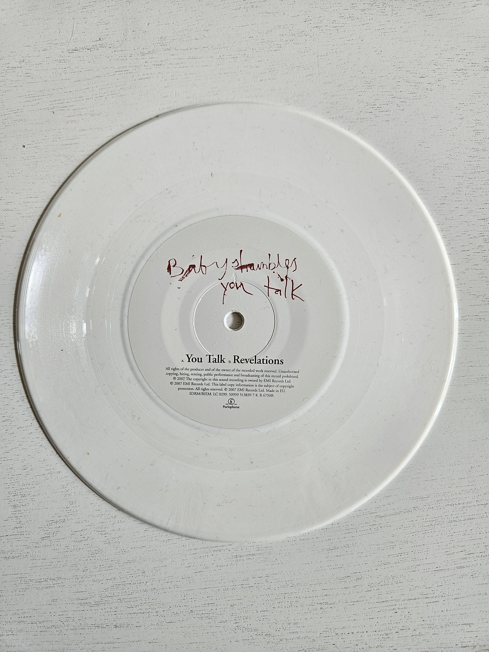 Step into the groove with this Babyshambles 7" vinyl featuring "You Talk" on side A and "Revelations" on side B. Fresh and never played, it’s perfect for spinning cool vibes and adding some indie flair to your collection. Get ready to press play and let the music do the talking!